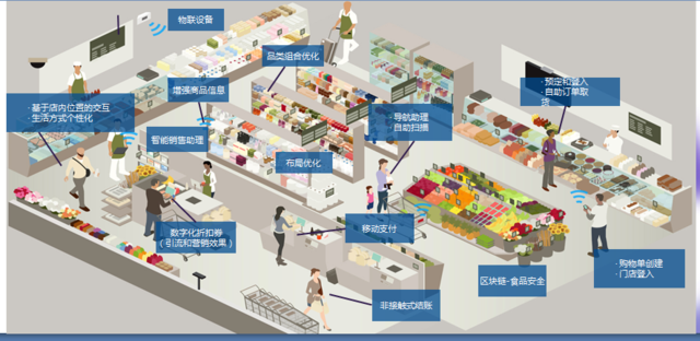 在互联网、移动网、物联网、大数据、云计算、区块链及人工智能等新一代信息技术下所进行的购物活动,实现了智能交易、智能物配与供应链、智能支付与结算及网络金融、智能交易环境、智能可再生资源及智能消费等全过程、全渠道的零售活动。如哈尔滨等地的机器人餐厅、上海以及合肥的未来商店、北京的“自动售货机再生资源回收”“智能市场”和“无人超市”等。“无人店”的成功将推动其他零售业态创新。